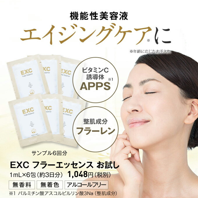 ブランド名 EXC 商品名 / 内容 EXC フラーエッセンス/お試しセット(1mL×6包) 特徴 APPS(アプレシエ®)高配合のEXCシリーズは、大名町スキンクリニックが独自に開発したクリニック限定の化粧品です。