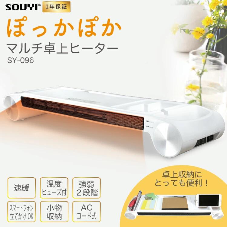 マルチ卓上ヒーター SY-096卓上ヒーター 暖房機 パソコンモニター台 ヒーター 足温器 足元暖房 デスク上ヒーター ■商品詳細寒い冬にパソコン作業をしていると手がかじかんでしまうことありませんか?乾燥して冷たい冷気にさらされる手、痛くてキーボードを叩くのが嫌!この手元あったか「ヒーター付モニター台」がおすすめ!モニター台から暖かい温風が流れてきて、手元を温めます。