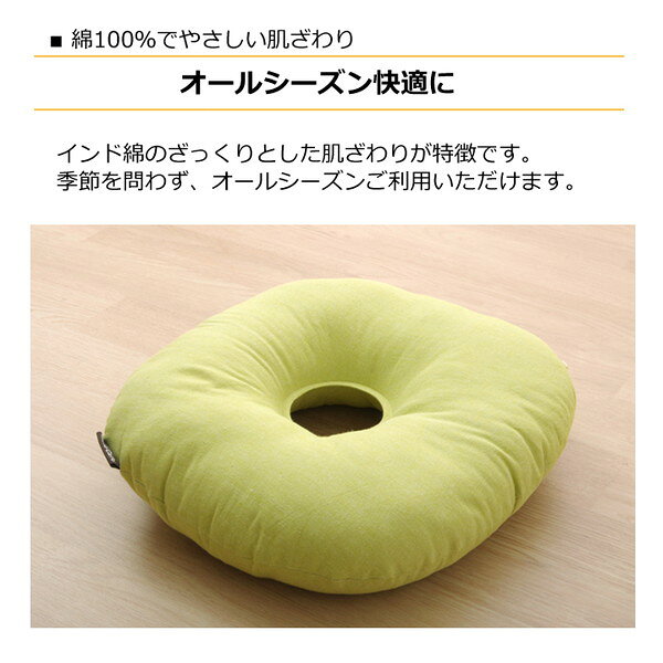 クッション 円座 綿100% 無地 シンプル ルージュ グリーン 約35cm丸(代引不可)【送料無料】